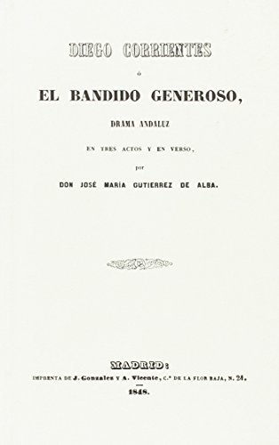 Diego Corrientes o El bandido generoso [Texto impreso] : reproducción de la 1ª edición de 1848 con motivo del centenario de la muerte de José María Gutiérrez de Alba introducción de José Luis Pérez Moreno