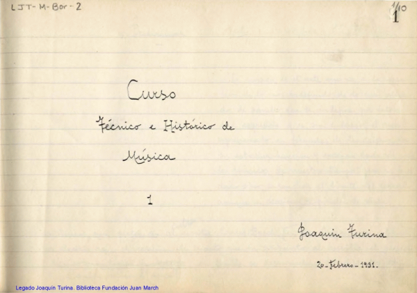 Cuaderno nº 1: Curso Técnico e Histórico de Música. En el tercer renglón cambia el título por el de Curso de Composición Musical. -- Cuaderno nº 2: Curso de Composición. -- Cuaderno nº 3: Curso de Composición Musical. I. El contenido de este cuaderno corresponde al tomo I del Tratado de Composición Musical, páginas 1-103. -- Cuaderno nº 4: Curso de Composición Musical. Libro II. El contenido de este cuaderno, hasta la página 246, corresponde al tomo I del Tratado de Composición Musical. Las páginas 247-297, corresponden al tomo II del Tratado de Composición Musical. Cuaderno nº 5: Sin título, Libro III. Las páginas 298 a 446 corresponden al tomo II del Tratado de Composición Musical. Cuaderno nº 6: Sin título, Libro IV. Las páginas 447 a 592 y 643 a 691 corresponden al tomo II del Tratado de Composición Musical. -- Cuaderno nº 7: Curso de Composición Musical. Libro V. Las páginas 593 a 610 corresponden al tomo II del Tratado de Composición Musical. Cuaderno nº 8: Tratado de Composición Musical. Libro VI. Páginas 611 a 642 que corresponden al tomo II del Tratado de Composición Musical. -- Cuaderno nº 9: Curso de Composición Musical. Libro VII. -- Cuaderno nº 10: Apuntes para el tercer volumen del "Tratado de Composición Musical".