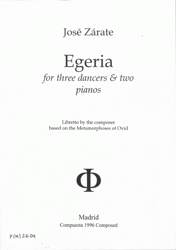 Egeria [Música notada] for three dancers & two pianos José Zárate; libretto by the composer based on the Metamorphoses of Ovid