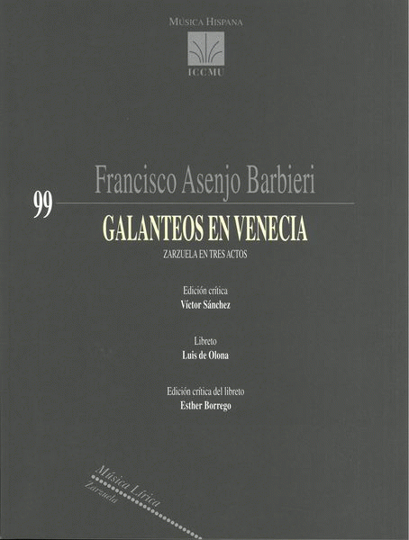 Galanteos en Venecia : zarzuela en tres actos / Francisco Asenjo Barbieri; edición crítica, Víctor Sánchez; libreto, Luis de Olona; edición crítica del libreto, Esther Borrego.