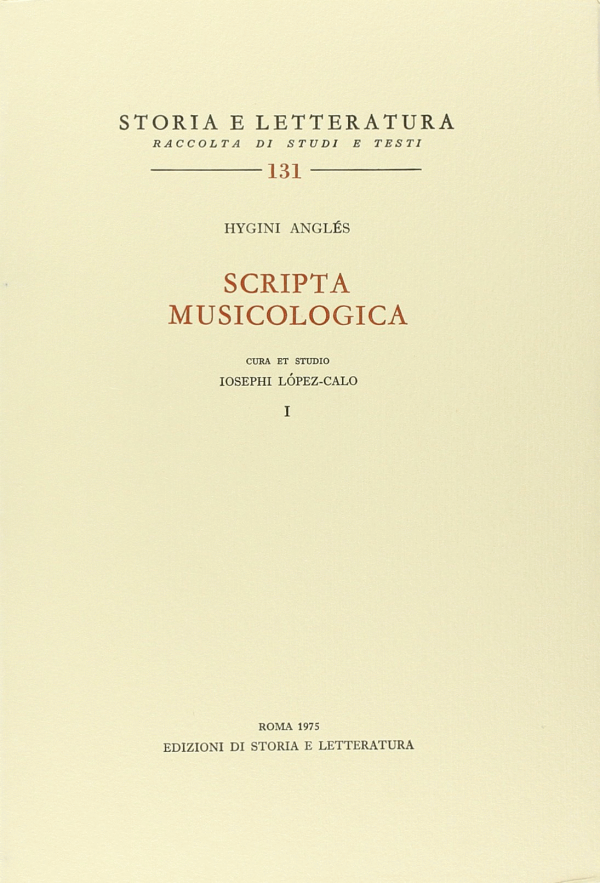Scripta musicologica [Texto impreso] Hygini Anglés; cura et studio Iosephi López-Calo