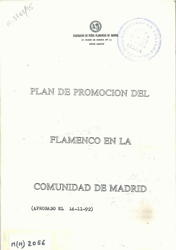 Plan de promoción del flamenco en la Comunidad de Madrid, aprobado el 14-11-92 [Texto impreso]