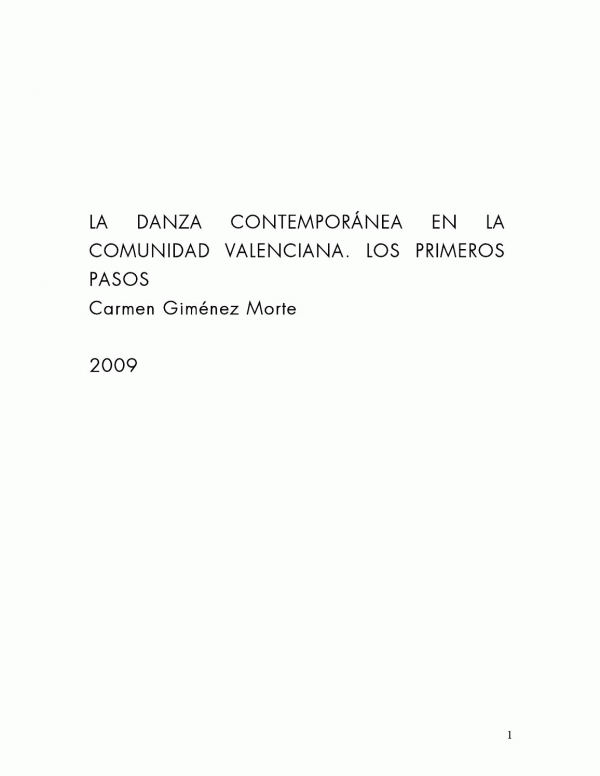 La danza contemporánea en la Comunidad Valenciana (los primeros pasos) Carmen Giménez Morte [Texto impreso]