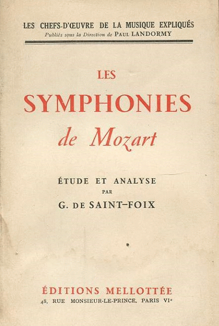 Les symphonies de Mozart étude et analyse par G. de Saint-Foix [Texto impreso]