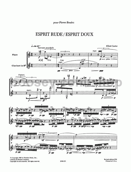 Esprit Rude-Esprit Doux II [Música notada] for flute, clarinet and marimba Elliott Carter