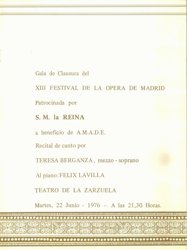 Gala de clausura del XIII Festival de la Ópera de Madrid recital de canto Teresa Berganza